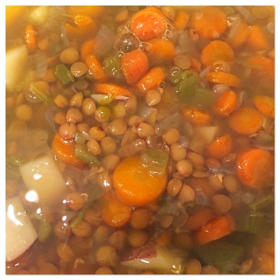 5. Añadir los vegetales a la olla donde se cocen las lentejas.