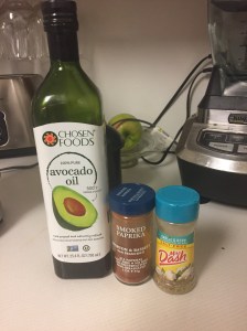 3. En un tazón pequeño, revolver el aceite de aguacate, la paprika ahumada y el sazonador de ajo.